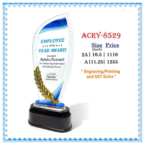 Impress recipients with this professionally finished acrylic trophy, designed for branding with your company logo, award title, and recipient name.