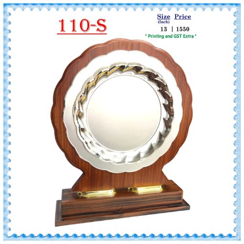 This premium wooden trophy features a metallic silver plate, creating a striking contrast against the natural wood. Perfect for high-level achievements and formal presentations.