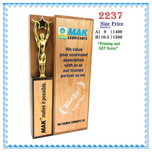 wooden trophy, appreciation award, recognition shield, achievement plaque, corporate memento