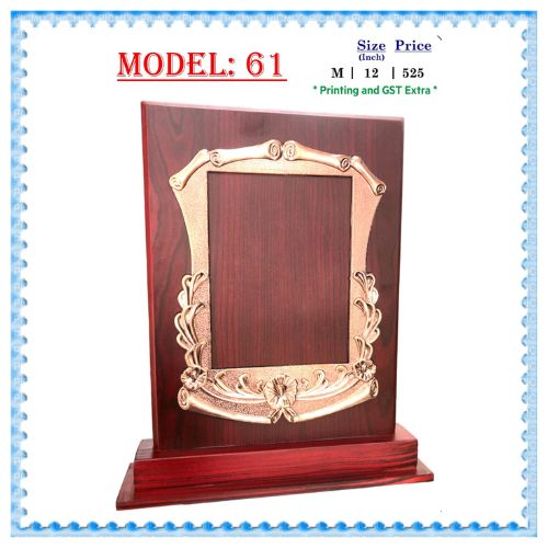 A traditional rectangular wooden trophy with a polished finish—perfect for academic or sports excellence. Features a customizable metal plate.