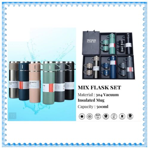 This premium flask set includes a sleek stainless steel flask and matching shot cups.
